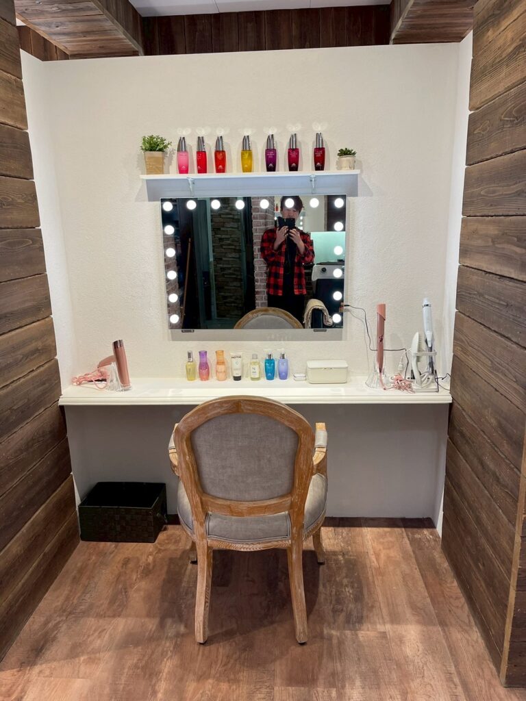 ReFaなどの最新ドライヤー、アイロン、高級ヘアオイル、スタイリング剤が自由に試せる楽しいドライブースです。